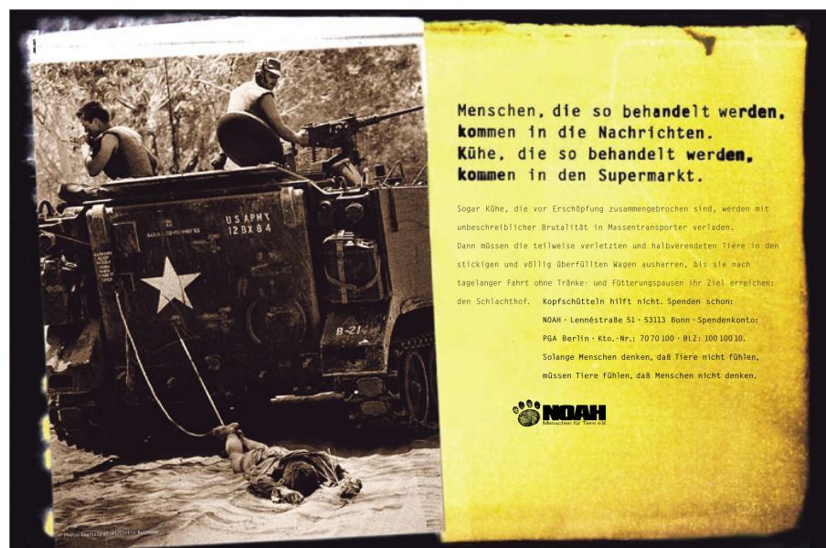 „Vom Tiermord zum Menschenmord ist es nur ein Schritt... Solange es Schlachthöfe gibt, wird es auch Schlachtfelder geben.“